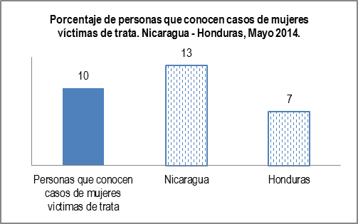 El proyecto realizó una evaluación en mayo 2014 sobre la Prevalencia de la Violencia en los municipios intervenidos, donde se entrevistaron 228 mujeres y 228 hombres. Los resultados reflejan que la violencia contra la mujer es alta, dado que el 61% de las mujeres entrevistadas, entre 20 a 49 años sufrieron algún tipo de violencia: Psicológica, verbal, física o sexual durante su relación familiar o conyugal. Asimismo el 9.6% de las y los encuestados respondió afirmativamente cuando se les preguntó si conocían de algún familiar o persona que haya sido llevada o retenida con engaño o a la fuerza para realizar un trabajo con o sin recibir pago. El estudio refleja que este problema es del 12.6% en Nicaragua y 7.4%.en Honduras.